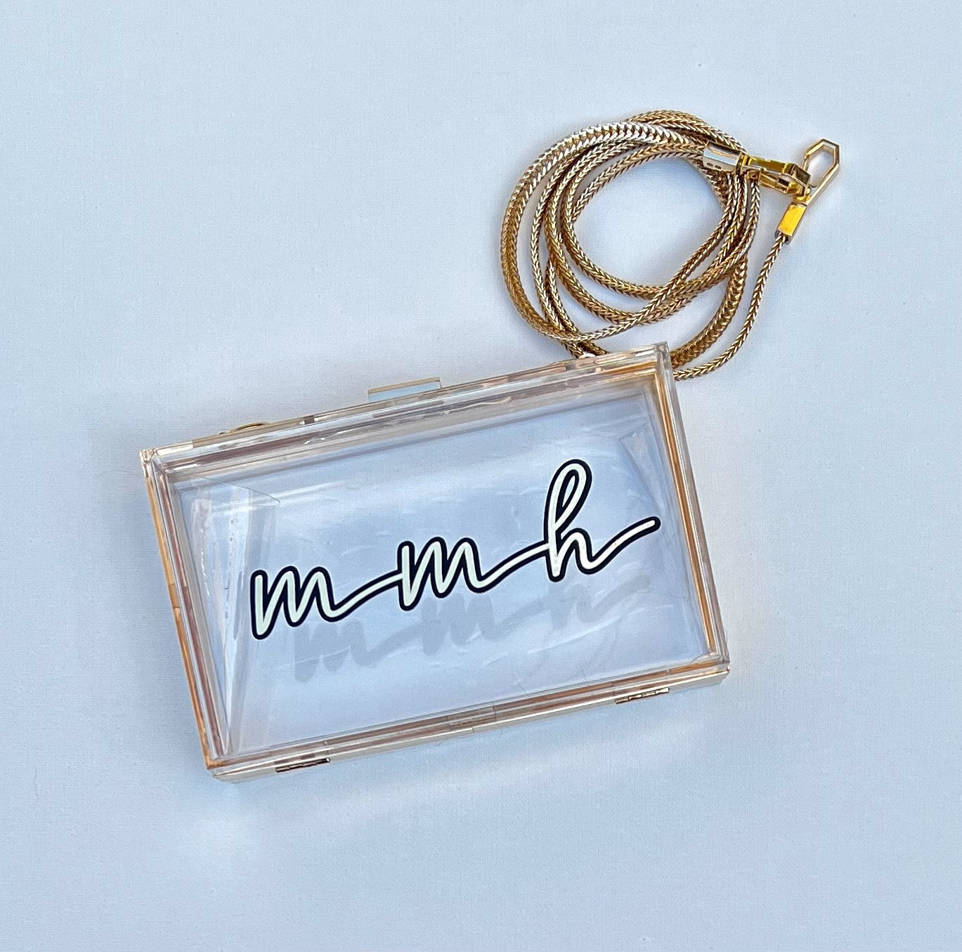 The Everly Bag is a hard acrylic crossbody bag with kiss clasp...